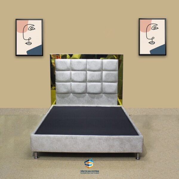 Cama Doble: diseño sofisticado con espaldar tapizado con espejos oro, que aporta estilo y comodidad a tu habitación.