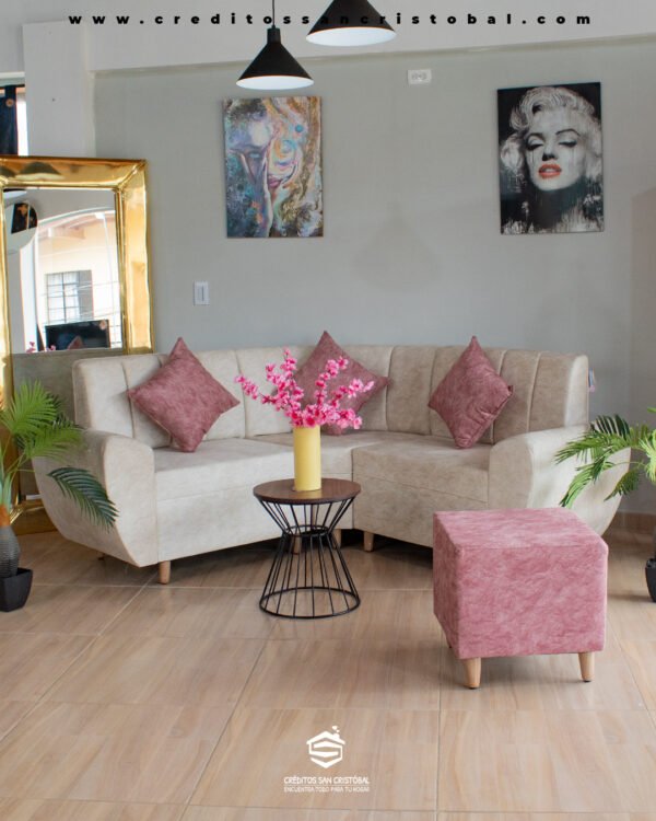 Perfecta para tu hogar, incluye esquinero con puff y cojines decorativos.